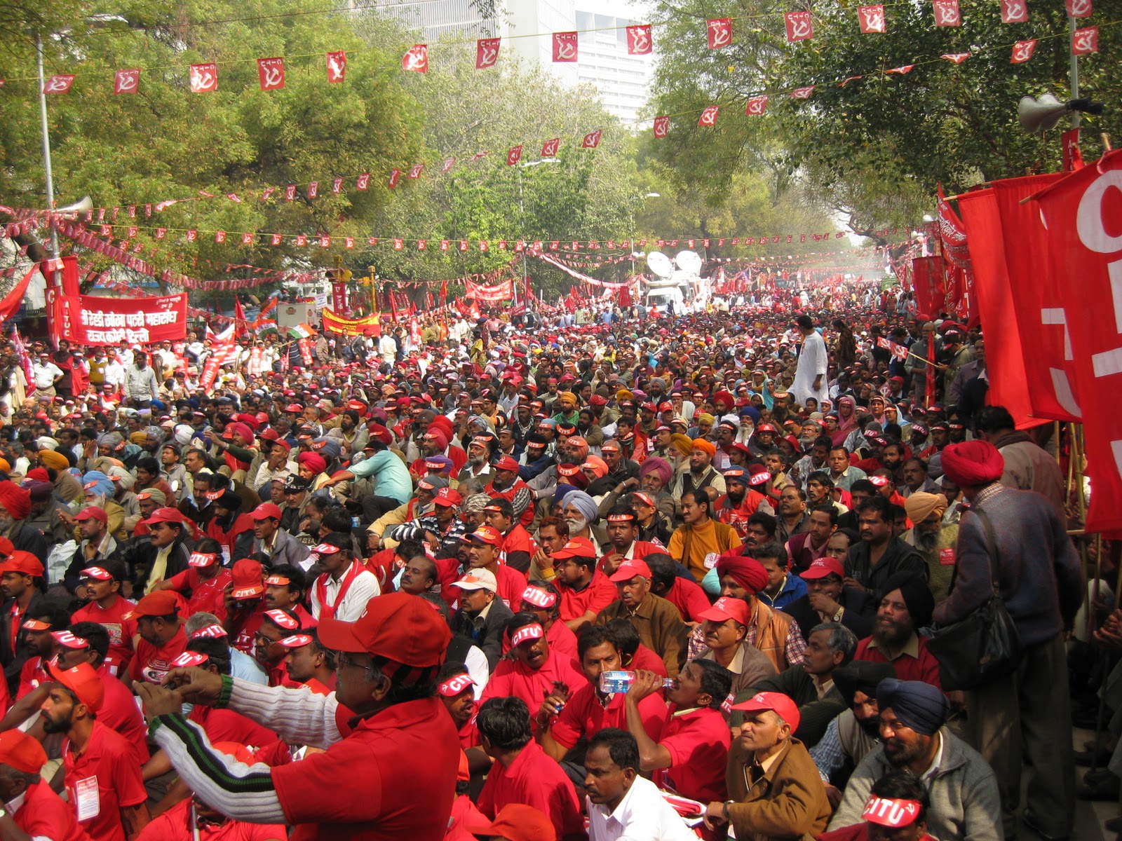 В Индии во вторник 28-го февраляи прошла крупнейшая за последние годы всеобщая забастовка, поддержанная 11 профсоюзами страны, в том числе проправительственными Всеиндийским Конгрессом Профсоюзов (AITUC) и Индийским Национальным Конгрессом Профсоюзов (INTUC). Работу прекратили около 100 миллионов человек – таким образом, эта забастовка стала одной наиболее массовых в мировой истории.
