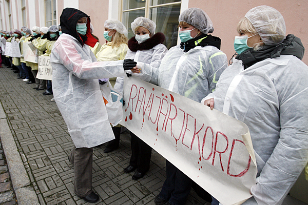 Сегодня, 29 октября, в Таллине на Тоомпеа, около дома Стенбока (Дом правительства), собрались работники здравоохранения, чтобы выразить свой протест в связи с ухудшением доступности медицинских услуг и сокращением бюджета Больничной кассы. От правительства требуют, чтобы были задействованы резервы Больничной кассы. Союз медсестер Эстонии и Союз профсоюзов работников здравоохранения Эстонии намерены передать членам правительства совместное обращение "Сохраним здоровье населения и систему здравоохранения". В мероприятии принимают участие также Представительное объединение пациентов Эстонии и Центральный союз профсоюзов Эстонии.